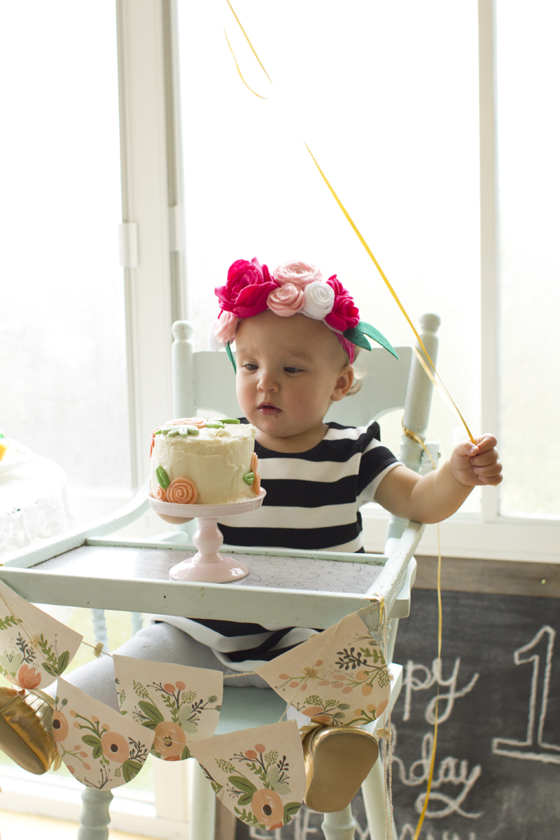 Highchair: This was my Baba’s highchair as a baby, so several generations have used this chair. My Mom repainted it this summer, and it usually stays at our family cabin. Thankfully my Mom brought it home just to use for Emery’s party. It makes these photos extra special!